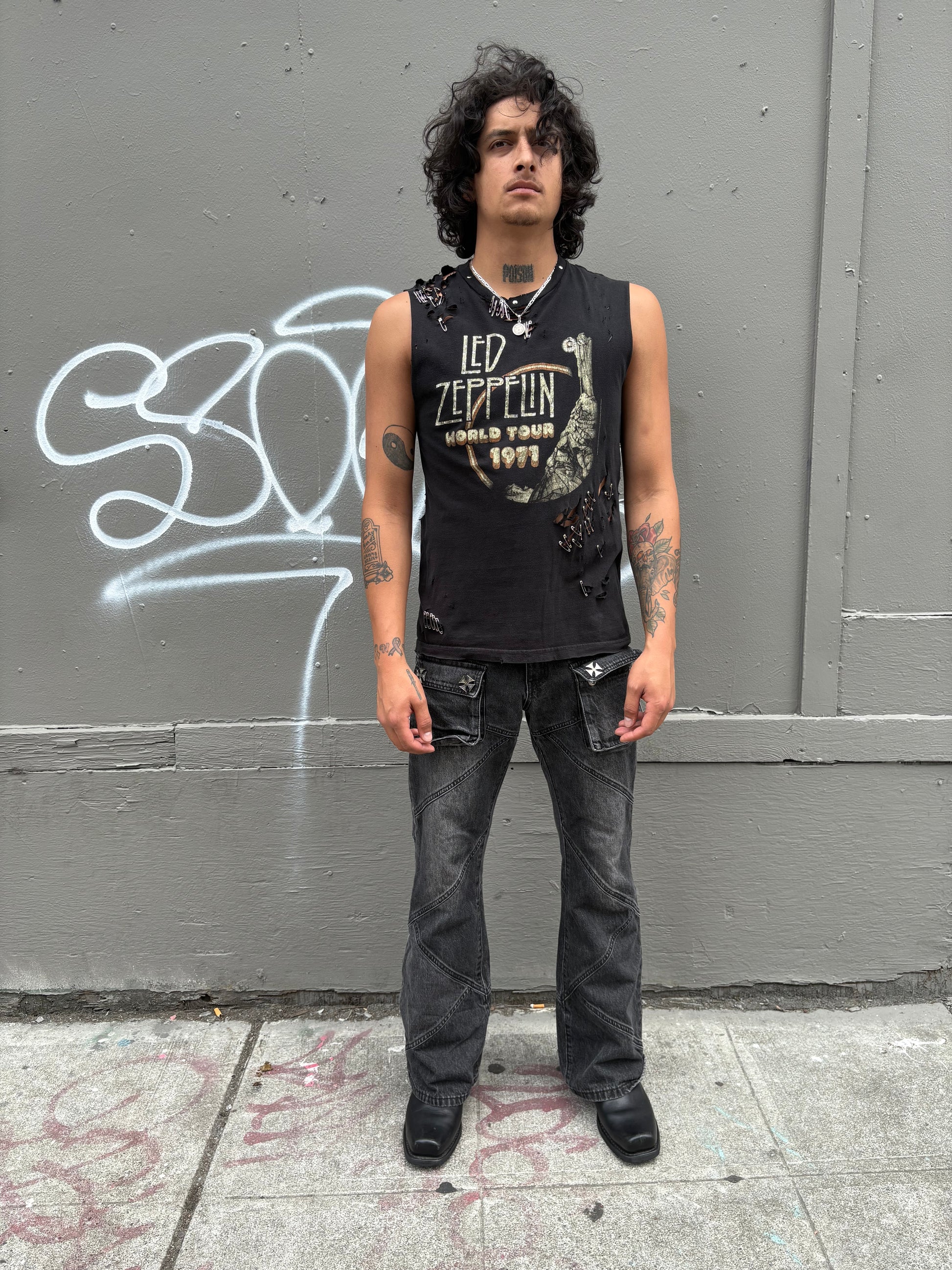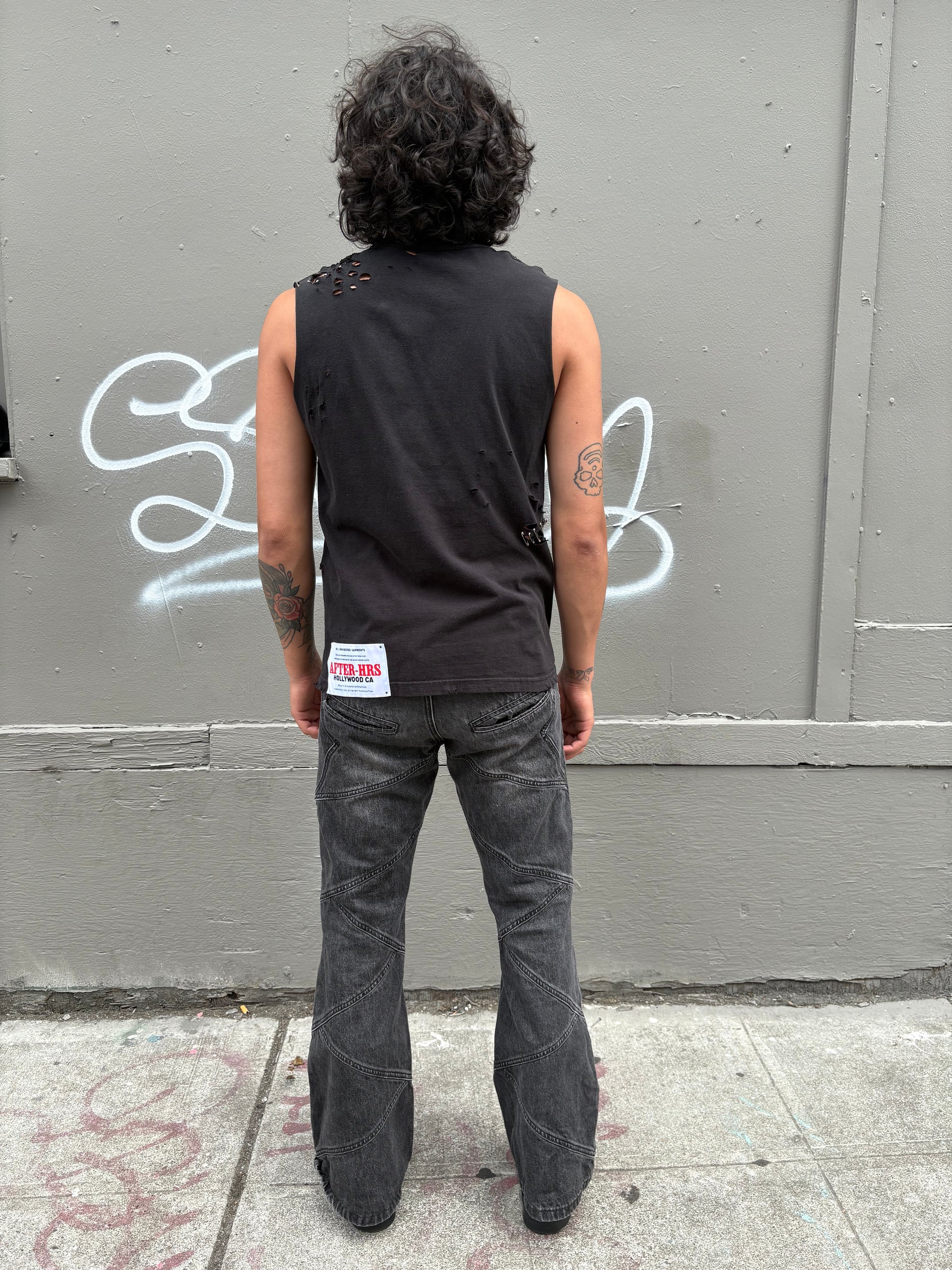 • Intentional Hand Distressing Throughout Garment