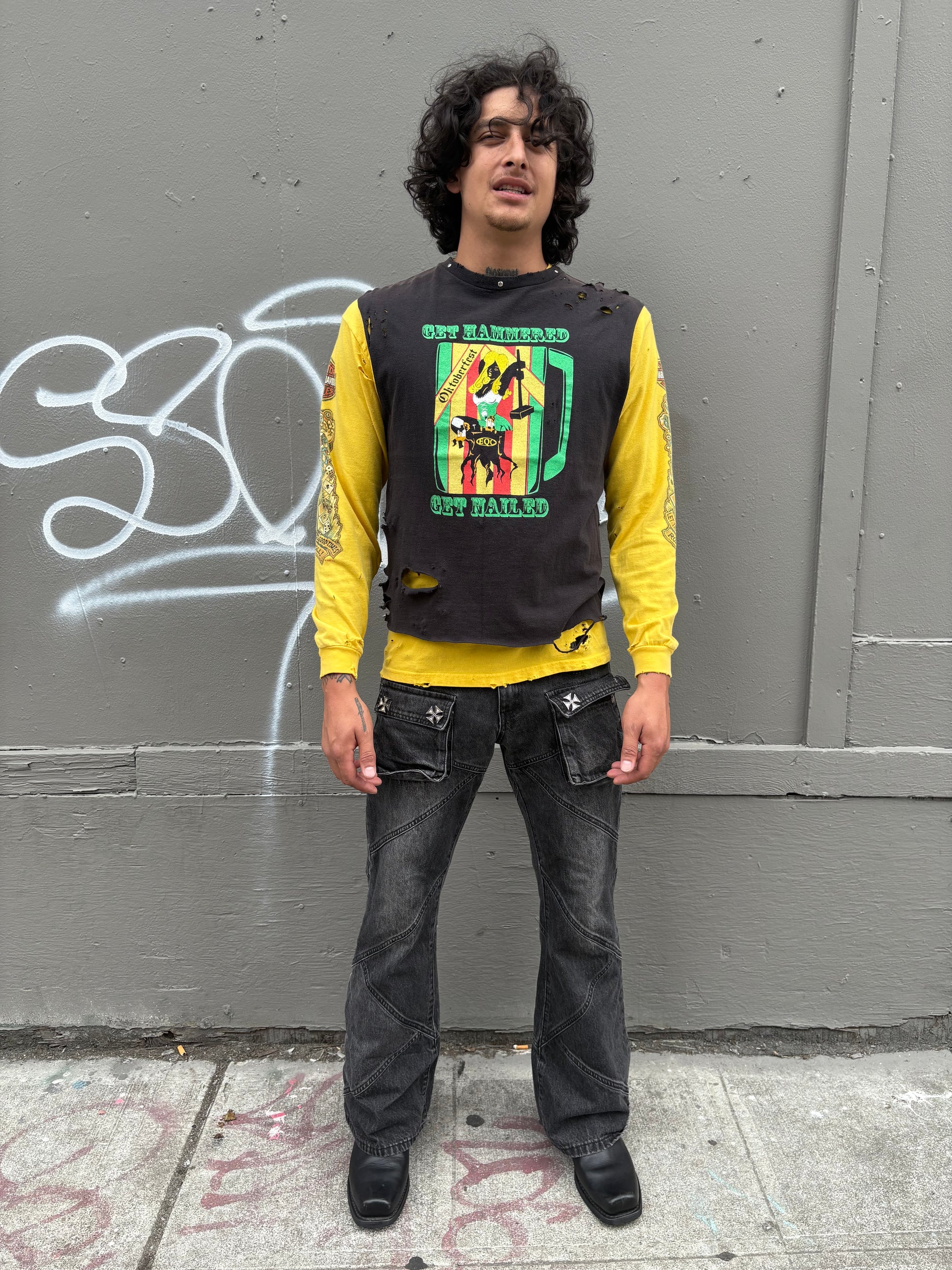 • Intentional Hand Distressing Throughout Garment